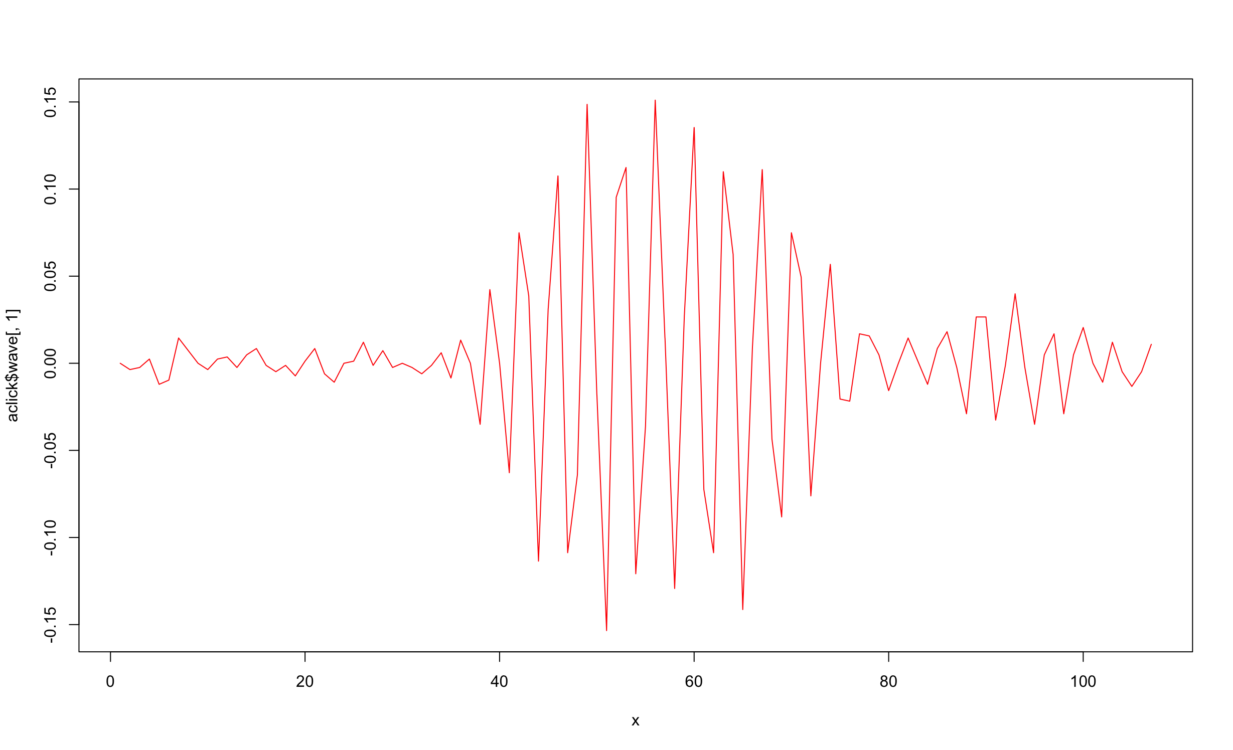 plot(x, aclick$wave[,1], type = "l", lty = 1, col="red")